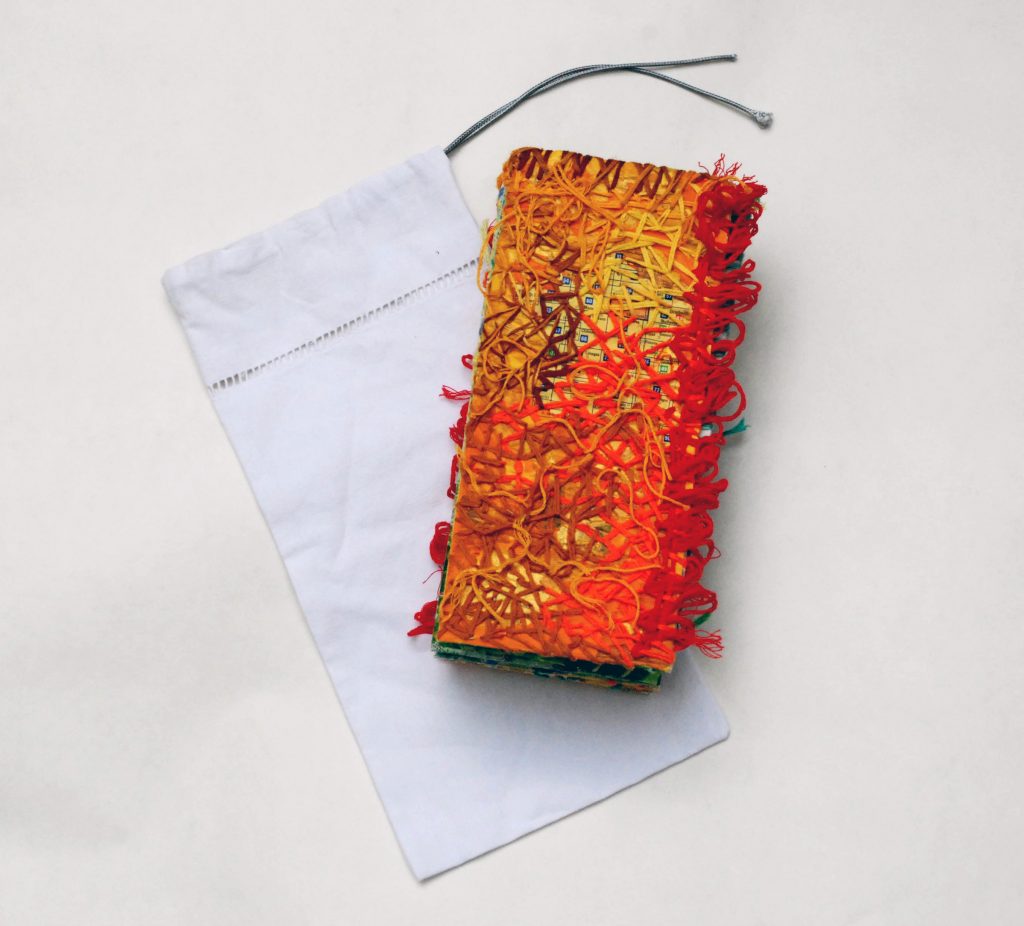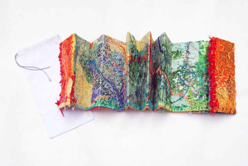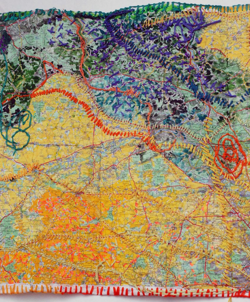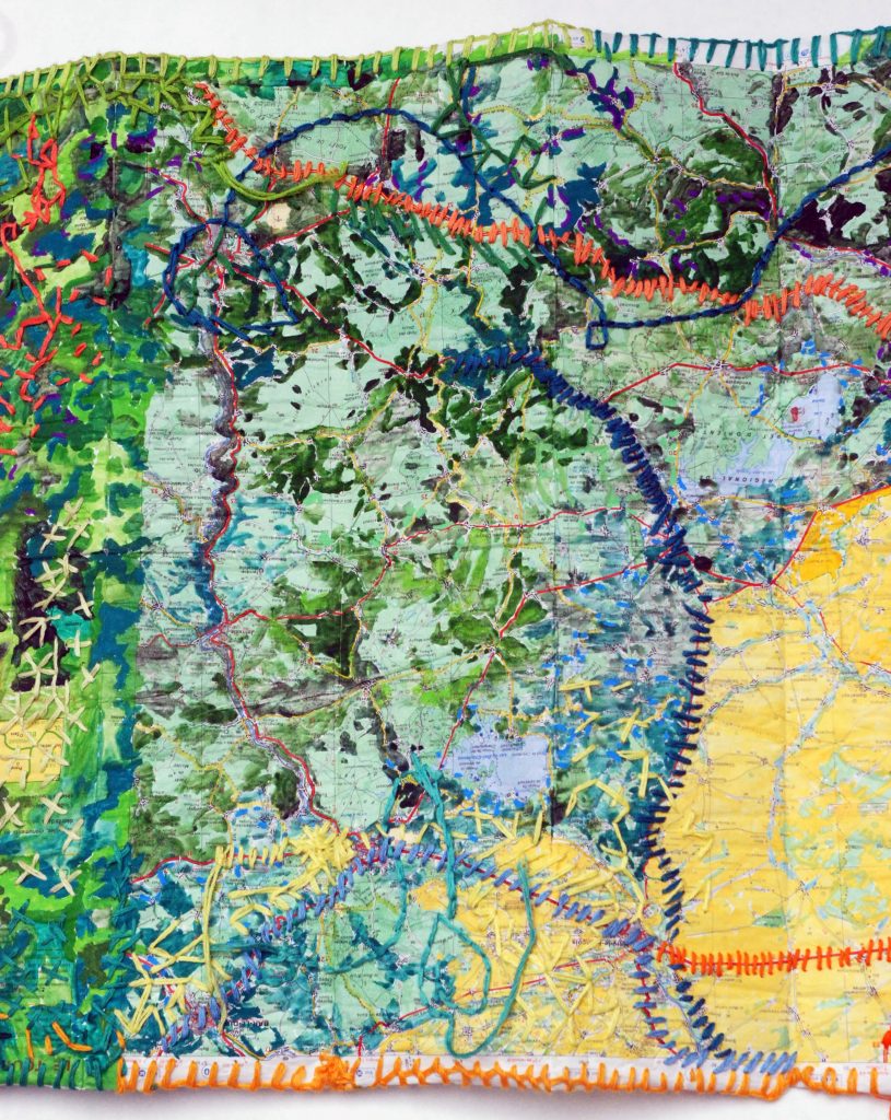 Voilà ma carte verte et jaune, présentée à l’envers. Parcourue de lignes de fil. Elles soulignent et réparent. Comme la poésie.