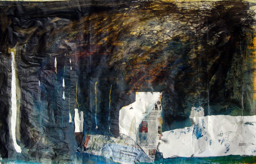 J’aime l’accident du papier qui a déjà servi. Ses déchirures, les tâches, la maladresse d’un geste. D’ailleurs, je travaille avec la main gauche acceptant ma «gaucherie» comme un espace supplémentaire de liberté.